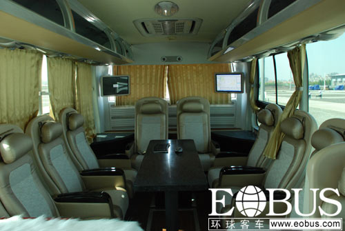 定位于高端商務用車,宇通ZK6122H9擁有豪華、先進的裝備。而其中最大的亮點就是車內的高級音響設備和無線網絡配置。首先,在每個座椅前面都裝有顯示屏,乘客可自由選擇電影,電視,音樂等多種項目,絕佳的音響和視頻效果足以讓每個乘客暢享每個旅行過程。其次,在車后部,更設置有無線上網休閑區,乘客可在這個區域保持對外自由溝通。而這款車也因此被稱為 “網絡版” ZK6122H9。