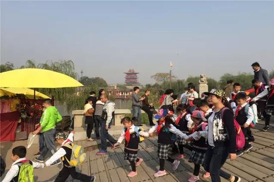 手拉手,登虹橋,張著嘴巴哈哈笑