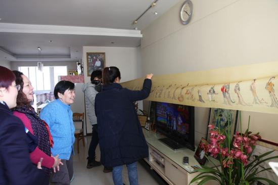 鑫苑名家的高愛青女士是工筆畫家,愛人和女兒也都從事美術(shù)設(shè)計(jì)工作,特別向臺(tái)灣同胞展示了他們的作品,與愛好美術(shù)的蔡麗琪女士共同聊起了中華傳統(tǒng)的工筆畫藝術(shù)。王彩霞女士是熱心的社區(qū)活動(dòng)組織者和參與者,兒子一家專程從外地回家過年,他們專門組織全家排練了精彩的節(jié)目;做廚師的弟弟一家人也都來姐姐家過年,為臺(tái)灣同胞烹制美味佳肴。