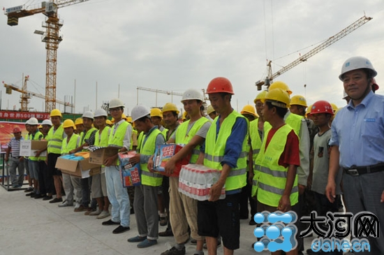 大河網訊 近日來,鄭州氣溫連續(xù)攀升,最高氣溫已達36.5度,烈日炙烤著大地,工地現(xiàn)場更是異常炎熱。為保障公司及項目施工一線員工的身心健康,維護員工的合法權益,傳遞企業(yè)關懷,中建七局工會攜手金科智匯谷項目在施工現(xiàn)場,為我們的農民工兄弟、現(xiàn)場管理人員送去“清涼”的慰問。