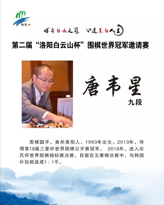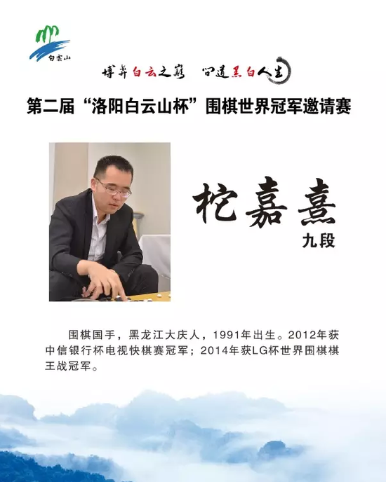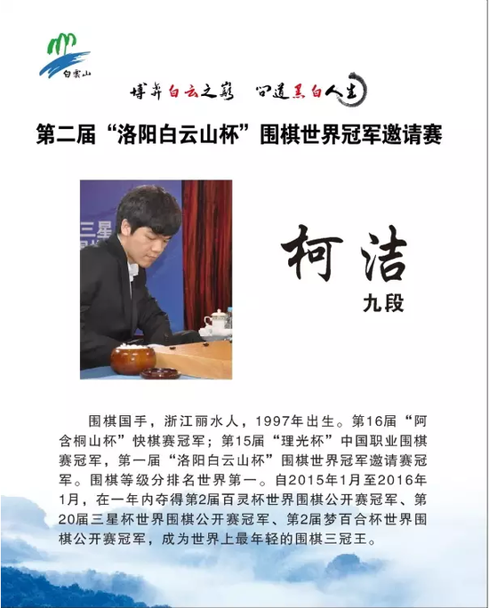 8月17日至19日,第二屆“洛陽(yáng)白云山杯”圍棋世界冠軍邀請(qǐng)賽,將在洛陽(yáng)白云山景區(qū)隆重舉行。屆時(shí),八位圍棋國(guó)手齊聚洛陽(yáng)白云山,博弈中原之巔,問(wèn)道黑白人生,棋圣聶衛(wèi)平也將現(xiàn)場(chǎng)掛盤(pán)講棋!去年首屆邀請(qǐng)賽的冠軍柯潔,能否繼續(xù)問(wèn)鼎白云山,奪取“王中王”,請(qǐng)拭目以待!