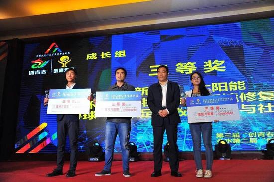 10月14日上午,第三屆“創青春”中國青年創新創業大賽河南分賽·金水第二屆“創贏未來” 全國大學生創新創業大賽暨金水區上市掛牌企業頒獎儀式在河南鄭州弘潤華夏大酒店舉行,出席本次頒獎儀式的省市領導有:共青團河南省委黨組成員武皓;鄭州市人大副主任王貴欣;省人力資源和社會保障廳就業辦副主任崔建軍;省工業和信息化委員會中小企業局副局長劉輝;河南省團省委城市部部長李山英;省農業廳科教處副處長吳秀云;省教育廳副調研員夏青;省科技廳中小企業辦公室副主任劉云霞;郵儲銀行河南省分行辦公室副總經理 李治國;鄭州市金融辦副主任李新峰;鄭州市人社局黨組成員 康中超;鄭州市科技局副調研員劉先卿;鄭州市人社局就業促進辦主任柳志亮;參加儀式的金水區領導有:金水區區委副書記、區長魏東;金水區區委常委、常務副區長李建超;金水區人大副主任燕建華;金水區政協黨組副書記徐建軍;金水區政府黨組成員段慶洲。以及各承辦單位及協辦單位負責人,河南牧業經濟學院、鄭州大學、華北水利水電大學等高校,大賽合作創業園區、金融單位有關負責人,中央駐豫新聞媒體、省內各大媒體代表,創業導師代表及創業青年代表近千人參加活動。