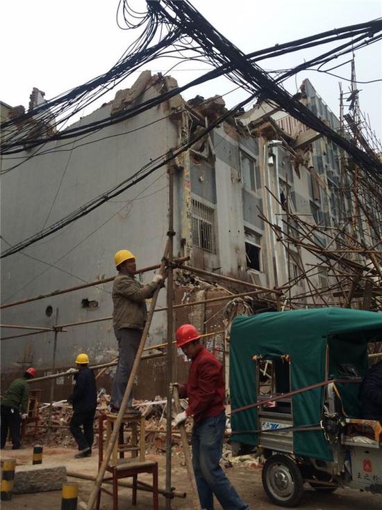 現場人員稱,出事樓房目前正在進行改造,坍塌疑與破壞承重墻有關,樓房房東已被帶至建設路分局接受調查。
