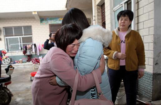 當(dāng)日下午3時(shí)許,劉成曉大隊(duì)長(zhǎng)與李某一起趕到附近的中學(xué)將貝貝接回家。當(dāng)貝貝踏出車(chē)門(mén)的那一刻,一直守在門(mén)口的錢(qián)愛(ài)芬眼淚奪眶而出,一把孩子摟進(jìn)懷里。