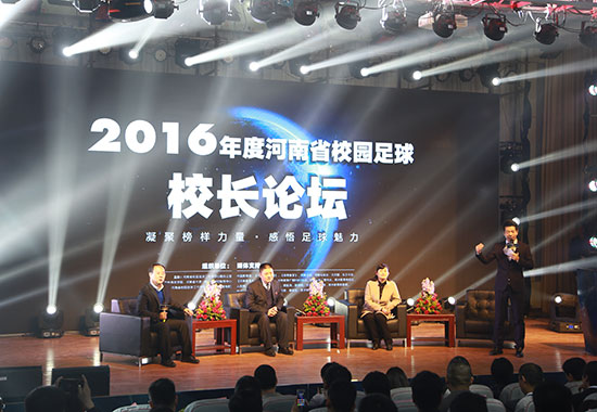 1月13日下午,由河南省校園足球工作領(lǐng)導(dǎo)小組辦公室主辦,鄭州師范學(xué)院、河南省中原一校一品研究指導(dǎo)中心協(xié)辦,由河南省校園足球工作領(lǐng)導(dǎo)小組辦公室(宣傳部)承辦的“2016年度河南省校園足球頒獎(jiǎng)典禮暨校園足球校長論壇”在鄭州師范學(xué)院盛大開幕。來自鄭州市、開封市、洛陽市、許昌市、周口市、商丘市、濟(jì)源市等十八個(gè)地市及省直管縣的教育管理工作者、中小學(xué)校長六百余人,來自人民網(wǎng)、《中國教育報(bào)》、河南電視臺(tái)等二十余家媒體參與了此次大會(huì)。