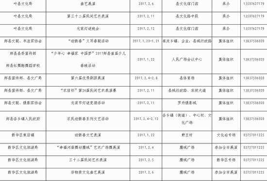 平頂山市2017年“暖暖新年·春滿中原”系列活動安排表