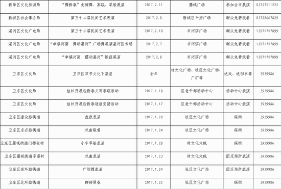 • 開封市2017年“暖暖新年·春滿中原”系列活動安排表格