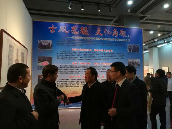 本次拓片展共展出鄭州市所屬文物單位:列子故里、大河村遺址博物館、紀(jì)公廟和河南人民書畫院收藏的磚、石精品拓片150余幅,得到了省、市領(lǐng)導(dǎo)和嘉賓及全國文物、金石拓片界的高度關(guān)注。全國政協(xié)教科文衛(wèi)體委員會副主任、河南省政協(xié)原主席王全書,河南省政協(xié)副主席靳克文,鄭州市政協(xié)主席王璋,鄭州市政協(xié)副主席吳曉君,鄭州市委常委、鄭東新區(qū)黨工委書記、主任王鵬,鄭東新區(qū)管委會副主任陳平山,河南省收藏家協(xié)會會長蔣繼明,河南省收藏家協(xié)會副會長馬馳騁,以及“古風(fēng)漢韻、文化商都”中國古代石刻藝術(shù)拓片展承辦方河南人民書畫院院長張書勇和幾十位非遺傳拓技藝代表性傳承人共同參觀展覽。觀展領(lǐng)導(dǎo)對于本次展出作品給予高度的評價,對于本次活動的舉辦也給予了高度認(rèn)可。