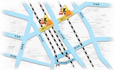 京廣快速路南北方向正常通行 農業路東西方向咋繞行請看上圖