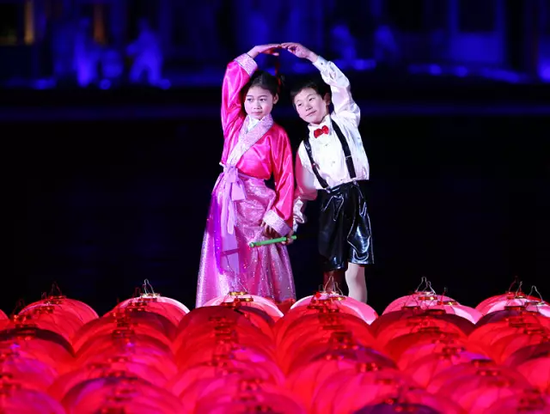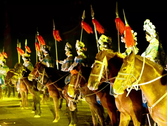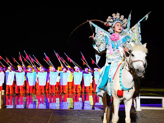 一曲《滿江紅》把演出推向高潮,炮火的轟鳴和滿江的紅色昭示壯懷激烈的豪情。