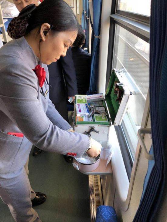 這時李車長突然想到班組的乘務員仇磊經常有胃病,會不會有隨身帶的胃藥呢?于是趕快通知宿營車向已經休班睡覺的仇磊詢問,真是功夫不負有心人,兩三分鐘過后正在休息的副車長任曉磊和乘務員仇磊帶著醫生需要的藥品一同從宿營車趕來,在醫生的指導下服用后癥狀明顯緩解,大家都舒了一口氣。“謝謝列車長和人全體乘務員幫助,不愧上黨老區放心列車。”旅客的家屬說。