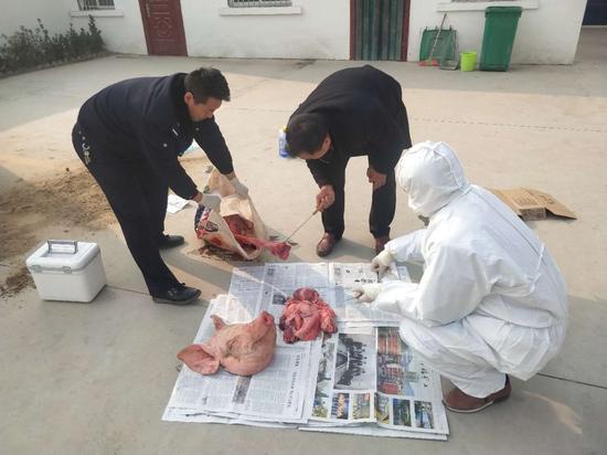 兩天前,副所長袁帥敏得到線索:轄區(qū)內(nèi)有村民將即將病死的豬宰殺,有違法售賣的可能。意識到這可能是一起涉及食品安全的案件,說不定能牽出一串唯利是圖,危害舌尖安全的違法犯罪嫌疑人。年關(guān)將至,群眾置辦年貨對豬肉的需求增多,要維護(hù)轄區(qū)群眾的舌尖安全,就不能放過任何一個可能的線索。袁帥敏趕緊跟所領(lǐng)導(dǎo)匯報(bào),商議了周密計(jì)劃,為了確定案件事實(shí),帶領(lǐng)辦案民警蹲點(diǎn)守候3個多小時,發(fā)現(xiàn)該村民確沒將病豬處理,而是賣給了殺豬人王某,王某又將病豬肉轉(zhuǎn)賣,根據(jù)這一情況辦案民警又順藤摸瓜查獲一輛載有大約四百斤異味豬肉的面包車,并迅速出擊控制上線賣家。在事實(shí)面前,犯罪嫌疑人王某、王某某只能對自己生產(chǎn)、銷售病死豬肉的犯罪事實(shí)供認(rèn)不諱。同時,為使證據(jù)更加固定,將案件辦成鐵案,經(jīng)局黨委李功方的指示,在食安、治安、法制等兄弟單位的的幫助下,積極與蘭考縣畜牧局、河南省動物疫病防控中心溝通,一天內(nèi)取得動物檢疫結(jié)果意見書,確定嫌疑人生產(chǎn)、出售豬肉系病豬肉無疑。至此,該案件事實(shí)清楚、證據(jù)充分,現(xiàn)已將涉嫌生產(chǎn)、銷售不符合安全標(biāo)準(zhǔn)食品案件的兩名犯罪嫌疑人刑事拘留,案件還在進(jìn)一步偵辦中。