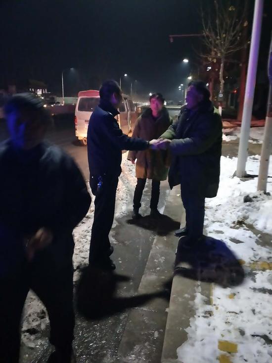 2018年1月5日20點,有一個身高180左右的男子在孟寨派出所門口晃悠,民警尚萬博上去詢問,發(fā)現他有些精神不正常,離家兩天了,米粒未進。尚萬博趕緊將他帶到值班室,給他拿來了熱饅頭、和他交談,了解到他是民權縣雙塔陳堂村的,叫陳某。又費了一番周轉通過雙塔派出所聯系到其家屬。考慮到天冷路滑,民警將陳某送到蘭考救助站,電話通知讓家屬從去蘭考救助站去接,陳某家屬在救助站見到民警時,緊緊拉住民警的手,表示感謝,原來家屬已經冒雪找了陳某兩天了。