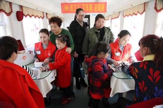 3月8日上午9時,在新鄉開往長治北列車上6905次列車上,聲鼎沸,熱鬧非凡,一場“迎三八、下車廂送健康”活動,正在列車上進行。
