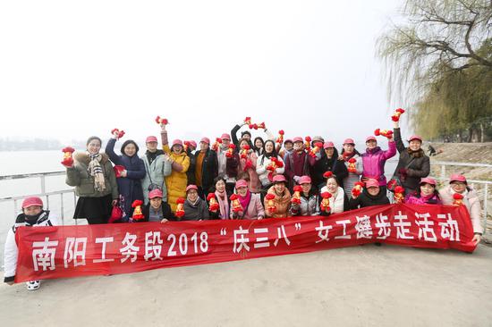 在第108個國際勞動婦女節,南陽工務段為讓女職工度過一個歡樂祥和的節日,于3月8日當天,舉辦“慶三八”女工健步走活動,生動演繹了“運動,健康,快樂”的新時代女性風尚,40余名女工參加了這次活動,短短6公里的健步走活動,體現了我段女性職工“我運動,我健康,我快樂”的思想理念,充分展示了現代女工的新魅力和新形象。