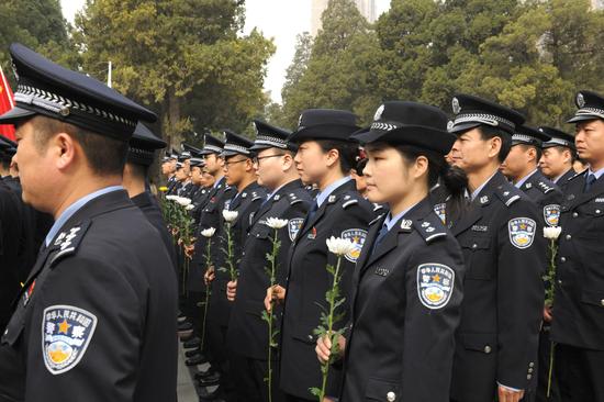 據了解,2017年,我省公安民警因公犧牲25人,平均年齡僅43.7歲。近年來,省公安廳黨委高度重視公安民警的優撫工作,出臺了一系列愛警惠警暖警舉措,并要求廣大民警以公安英烈為榜樣,學習他們忠誠于黨、獻身人民警察事業的政治品格;學習他們牢記宗旨、傾情為民的公仆情懷;學習他們勇于斗爭,一往無前的英雄氣概;學習他們矢志不渝、無私奉獻的敬業精神,以更昂揚的姿態、更務實的作風,全力做好各項公安工作,以更輝煌的業績告慰烈士英靈。(河南省公安廳供稿)