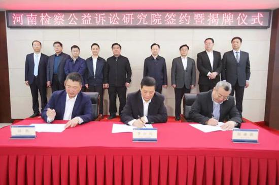 2018年4月25日,河南省人民檢察院、鄭州大學、國家檢察官學院河南分院(以下簡稱學院)合作籌建的河南檢察公益訴訟研究院簽約暨揭牌儀式在學院舉行。據悉,這是由檢察機關和高校共同組建的關于公益訴訟的專門性研究機構。