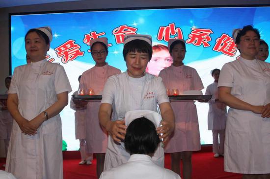 5月12日,第45屆南丁格爾獎獲得者、全國人大代表、柘城縣人民醫(yī)院護(hù)理部主任宋靜應(yīng)邀出席河南中醫(yī)藥大學(xué)2018年國際護(hù)士節(jié)慶典,現(xiàn)場為新進(jìn)入崗位護(hù)士進(jìn)行授帽并莊嚴(yán)宣誓。慶典上,柘城縣人民醫(yī)院工會主席劉運(yùn)龍宣讀了獎助學(xué)金人員名單,并進(jìn)行“柘醫(yī)南丁格爾基金”年度基金捐贈。