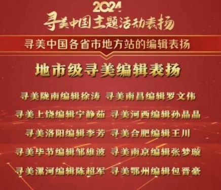 尋美三門(mén)峽編輯潘明、尋美漯河編輯陳超軍、尋美鄭州編輯時(shí)巖、尋美洛陽(yáng)編輯李芳榮獲2024年度尋美·中國(guó)各省市地方站編輯表?yè)P(yáng)——地市級(jí)尋美編輯表?yè)P(yáng)