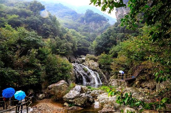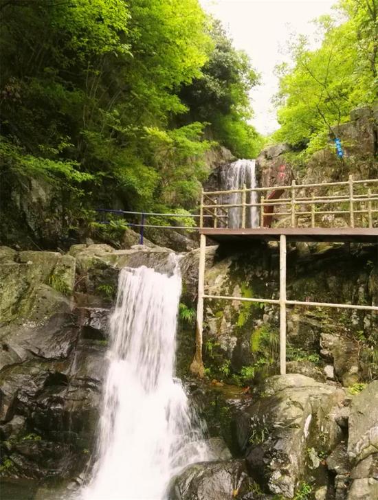 春風和煦, 翠竹成陰,山壁陡峭,江流澎湃。明媚的春光照在大地上,萬物呈現一片生機,形成一幅秀麗的山水圖。景區內古樹參天,兩邊奇峰突兀,山、泉、潭、瀑、洞分布于峽谷,至今保持原始風貌。即使夏季日光猛烈,在多位交叉纏繞的枝丫下,也只是偶有幾縷光輝穿過,行走在滿是“斑駁”的林蔭小道,微風乍起,順著叮咚叮咚的流水聲看去,溪水細浪跳躍,攪起滿潮碎金。好一片清爽愜意!蔭密布,氣候涼爽,怎能不是避暑佳地?