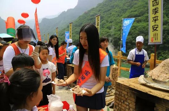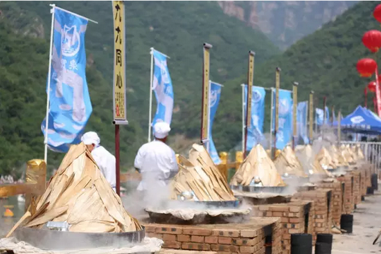 活動現場烹飪出十個重達2000余斤的具有太行山特色的粽子,粽子原料均取自太行山原生態、綠色無污染的地道食材,并現場邀請嘉賓、游客品嘗,創造了首個河南景區萬人同品寶泉粽子宴的盛世奇觀。
