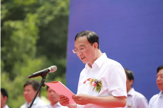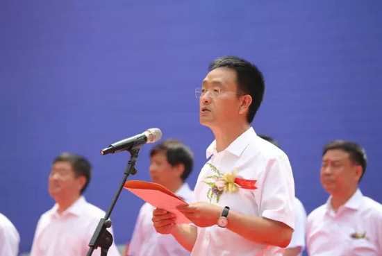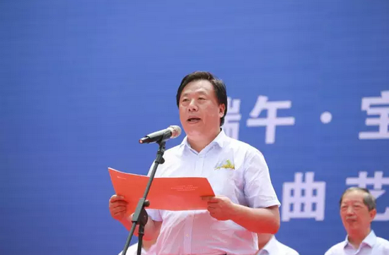 河南省人大常委會副主任蔣篤運宣布龍舟賽開幕。