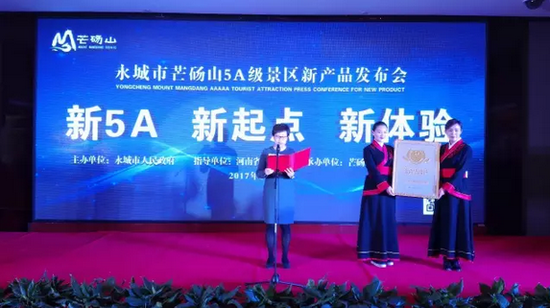 發布會上,河南省旅游局副局長周耀霞宣讀了國家旅游局授予芒碭山旅游區國家5A級旅游景區文件。