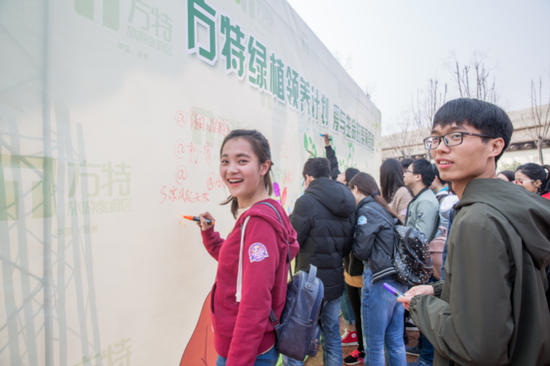 3月18日,鄭州方特夢幻王國舉辦了“大學生綠植領養計劃”的開幕儀式,工作人員不僅邀請了鄭州七十多所高校的學生代表認領綠植套裝,還為現場游客派發了綠植種子,旨在倡導低碳生活方式,傳播綠色環保理念 。