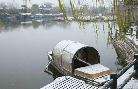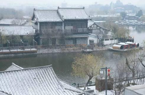晶瑩的雪花,寧靜的汴河,沐浴在蒼茫天空下。所有的一切,消散了喧囂,抹去了浮華,美得剛剛好。