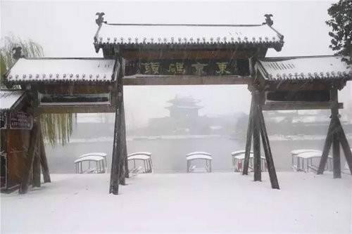 大雪遇上清明上河園,銀裝素裹下的虹橋、碼頭、官驛、食街美好的像是一幅畫……
