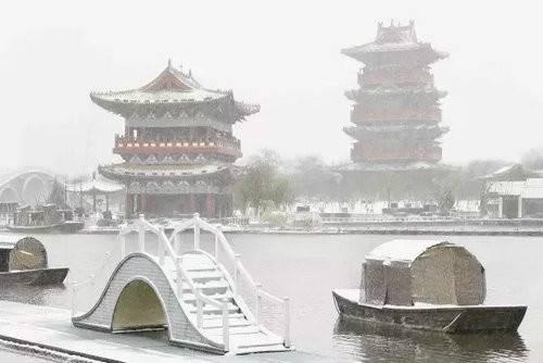 一幅畫成就了一座園,一場雪讓這座園唯美如畫。2018年的初雪,與清明上河園的完美邂逅,讓人感覺時光倒流,似乎看到了千年前雪中東京汴梁城的景象。