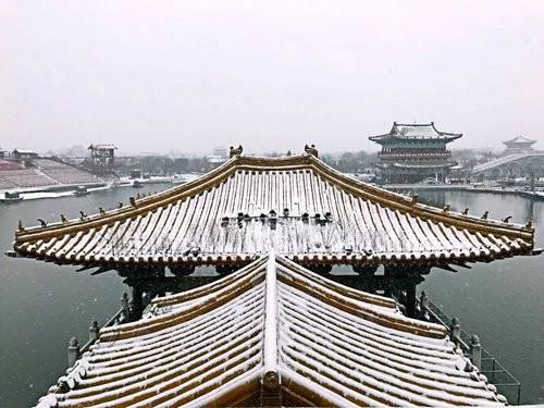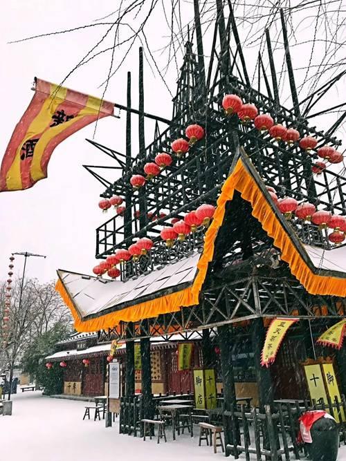 一下雪,清明上河園的北宋汴梁氣息,變得更加濃郁,建筑也更加的典雅古樸……