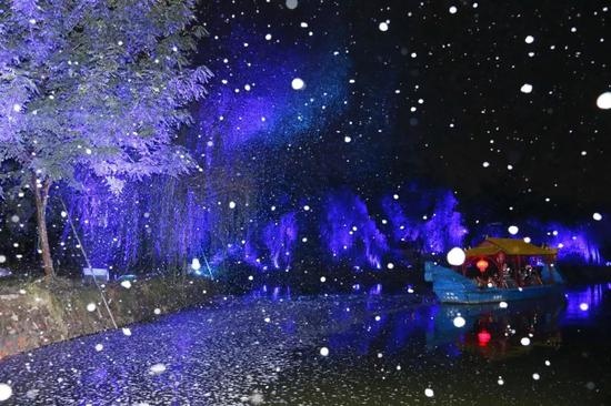 此項目通過“春夢、夏荷、秋韻和冬雪”來展示大宋汴河的夢幻四季,主要內(nèi)容由六部分組成,具體為:虹橋尋勝汴河游、東京夢華在人間、畫卷一展越千年、隋堤煙柳今再現(xiàn)、萬荷叢中聞秋聲、雪霽清園賞燈影。