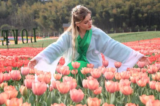 開幕當天景區(qū)內設置特色活動:濃郁風情、大型音樂演唱會、最美花仙子與花競艷、信陽毛尖采茶節(jié)活動等。今年花千谷景區(qū)特邀女子十二樂坊空降花海,為現(xiàn)場的游客帶來一場音樂盛宴!與此同時花仙子評選也在景區(qū)落地拍攝,今年的獲獎花仙子可謂是中西結合,風情萬種,在八位花仙子中有一位來自烏克蘭的外籍美女奧莉雅以及一位中國籍混血美女蘇馨兒參與本次美麗花仙子活動,外籍美女著中國傳統(tǒng)古裝漫步花千谷,盡顯滿滿異域風情。讓整個園區(qū)更加多彩多姿!