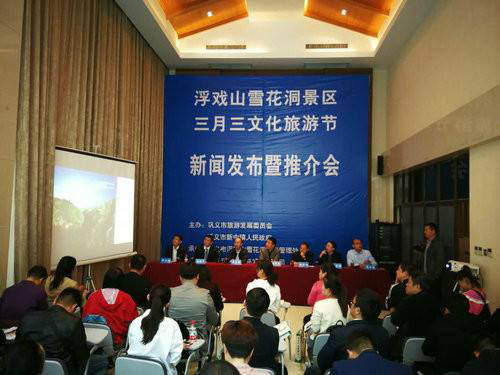 看不完的天上仙境人間奇功,正是浮戲山。4月10日,浮戲山雪花洞景區三月三文化旅游節新聞發布暨推介會召開,本次活動由鞏義市旅游發展委員會和鞏義市新中鎮人民政府聯合主辦,鞏義市浮戲山大展旅游開發有限公司承辦。參加此次發布會的領導和嘉賓有:鞏義市政府黨組成員馬錄克、鞏義市旅發委主任秦文坦、新中鎮鎮長馬廷文、匯鼎旅游副總裁宋述明、鞏義市浮戲山大展旅游開發有限公司總經理權安福等代表,會議由鞏義市旅發委副主任、鞏義浮戲山雪花洞管委會主任時永斌主持。
