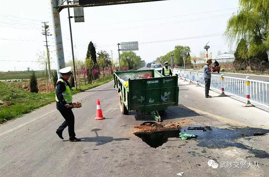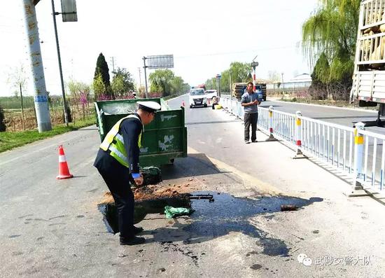 按理說事故處理結束,交警可以走人了,可是王濤看到路上殘留一大片機油,如不及時清理,很有可能殃及路人和過往車輛。見此情景,他二話不說,跑到超限站借來鐵鍬,然后從路邊的溝里取土,覆在機油上。等到差不多干的情況下,戰友們一起動手,再將“油”土清理到路溝。