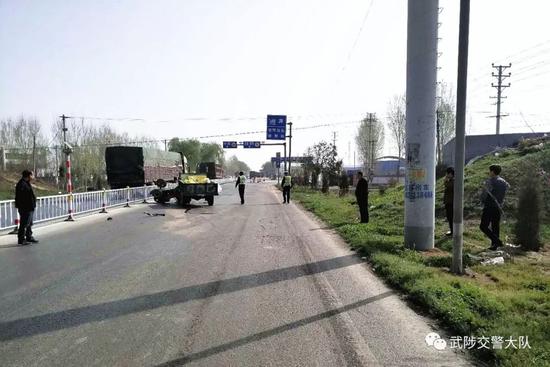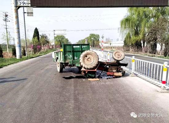 3月27日早上,省道新洛公路武陟縣西陶超限檢查站西側,一輛由西向東行駛的小四輪拖拉機因駕駛人操作不當翻倒在公路上,造成單方交通事故。