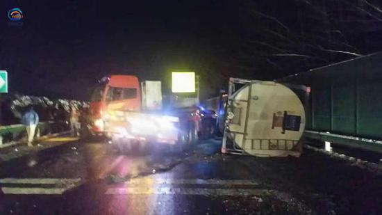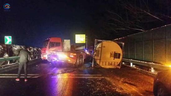 截止到今天早上八點,鄭少高速 登封段事故高速交警和路政都在現場處理。
