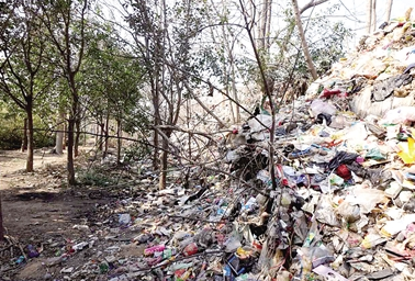 25日下午,鄭州市民投訴,建設路西流湖地鐵口A出口處附近,建設路北邊的綠色廊道內堆滿了生活垃圾,大有將該段廊道掩埋之勢。