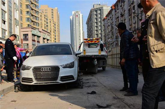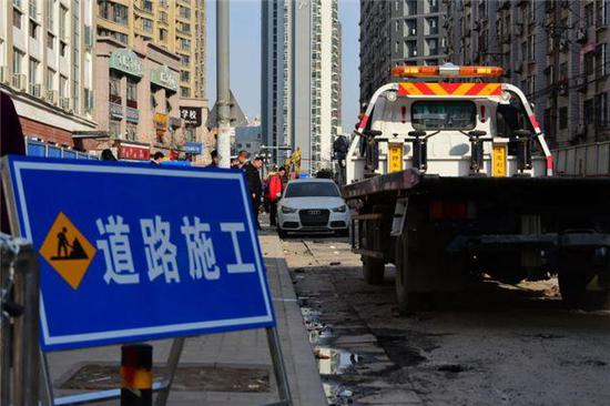 下午3點(diǎn)許,交警四大隊(duì)一名民警趕到現(xiàn)場(chǎng)?!拔覀円崖?lián)系拖車(chē),很快會(huì)將奧迪車(chē)拖離現(xiàn)場(chǎng),以免影響市政道路施工。”民警稱(chēng)。