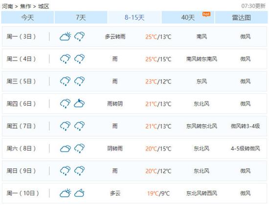清明節焦作天氣