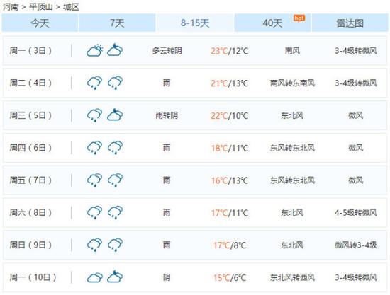 清明節平頂山天氣