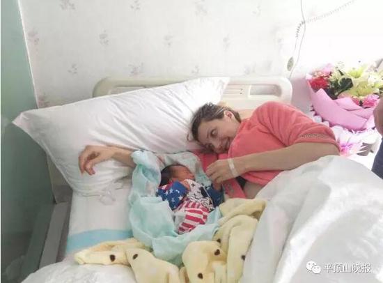 平頂山衛東區東高皇街道上徐村董莊村民組小伙陳宣宣娶回一個洋媳婦阿廖娜,他們的愛情故事被鄰居傳為佳話。昨天,陳宣宣與記者聯系報喜:“我媳婦生了一個健康的男寶寶”。昨天上午,在市區南環路一家民營醫院,記者見到了當上媽媽的阿廖娜。她氣色不錯,身邊躺著一個剛出生不久的寶寶。阿廖娜不時瞅瞅寶寶、摸摸寶寶的小手,然后笑笑,顯得非常開心。