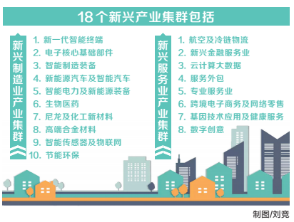 18個新興產業集群包括