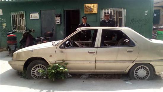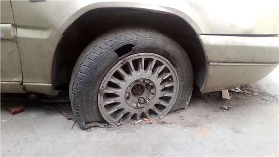 小區(qū)居民崔女士介紹:三年前,這輛小汽車就停在這里了,從此再也沒有挪過窩。前不久,小區(qū)請施工隊硬化路面,當(dāng)時工人們把所有工程都施工完了,只剩下這輛車所在的位置,施工方報警多次,讓交警與車主聯(lián)系,但最后得來的消息是:車主是新疆人,來鄭州做生意不成功,回新疆發(fā)展了,遲遲未來處理。無奈,施工方把車輪附近給鋪上水泥,車輪被砌在水泥里。