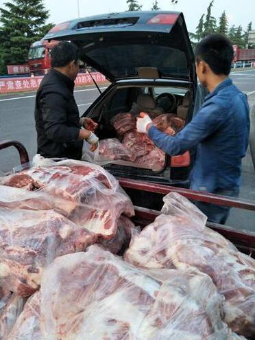打開車門后,讓他們驚呆的是,車里塞滿了一扇扇豬肉,小車后輪被壓扁,車頭還往上翹著。