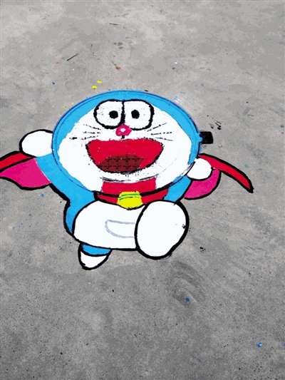 萌萌的龍貓、Q版的皮卡丘、萌萌的薩摩耶、靈動的哆啦A夢……剛走進鄭州實驗高中的校門,一組組妙趣橫生的井蓋手繪就奪人眼球。而不遠處,則有幾名手持畫具的同學圍著井蓋仔細畫著。
