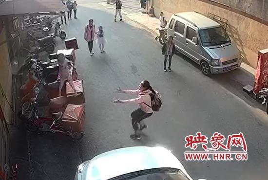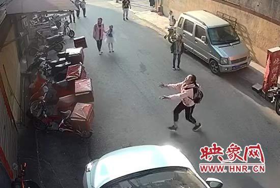 9日下午,一則1分12秒的視頻在朋友圈中傳開。視頻中可以看到,9日上午7時20分,滎陽市塔山路北段一小巷口處,正是學生上學時間。路過此處的一名市民和幾名小學生紛紛抬頭向上看。一身穿粉色上衣、黑色運動褲、扎著馬尾辮的小女孩路過攝像頭后好像看到了什么又折了回來。