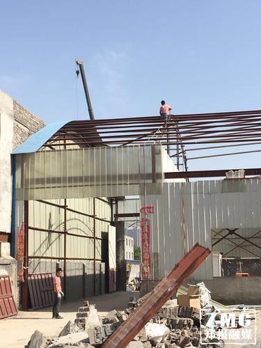隨著一車一車設備被抬到車上拉走,工作進入第二階段,房頂上的鐵皮和鐵梁,也被一一吊下來。