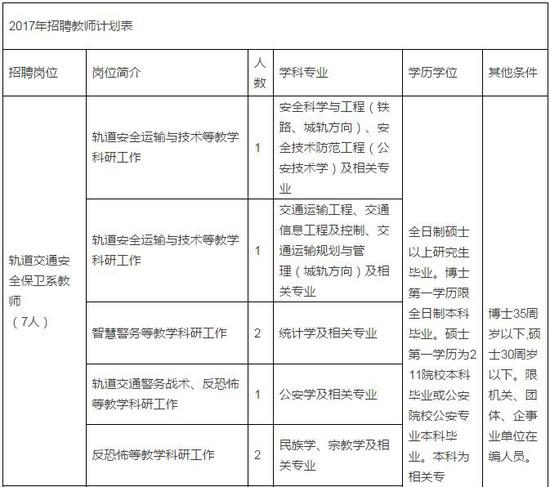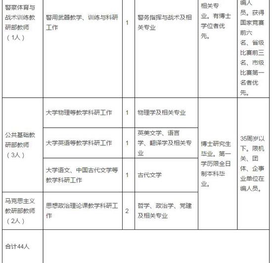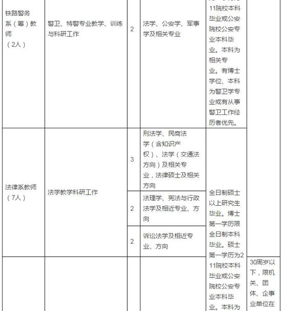 鐵道警察學院招聘教師和教學管理人員
